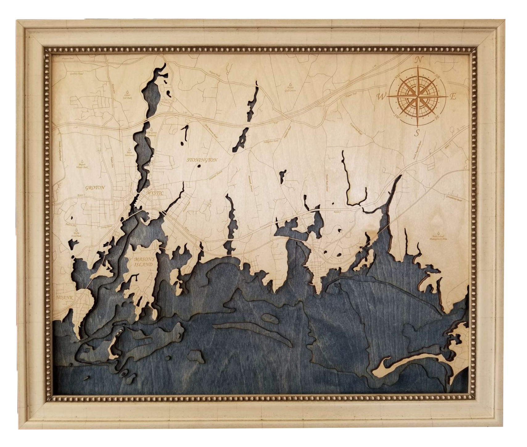 Customized laser cut bathymetric maps of seaside cities and towns. Available through Etsy and The Finer Line Gallery in Mystic, CT